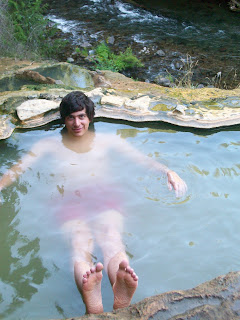 Where to begin...first of all, if you have never experienced natural hot springs, then you haven't lived. Words cannot not describe how much I love the place we discovered. On a whim (and recommendation/clipped magazine article about it from Raf's aunt) we decided to stop at Umpqua hot springs on our way to our campsite on the coast. It was probably one of the best decisions ever made. It was a bit hard to get to (winding dirt and gravel roads and wooded areas), but oh so worth it. Once we parked, we walked across a bridge over a flowing river. The view was spectacular. The sun was casting magic on the water and surrounding woods and the temperature was just right. We started up the steep trail, through the woods until we came to a ledge that had a number of soaking pools. The one at the top was the hottest (too hot!) and they gradually got cooler until you got down the river. We found our sweet spot, the pool right in the middle, not too hot, not too cold, and overhanging the ledge with a view of the river below. There were 3 other people there, and everyone was clothed (there were warnings of frequent nude bathing). We jumped from pool to pool, getting hot, then cool, and then we just stayed and soaked in our favorite for a while, taking it all in. It was so peaceful and perfect. Finally, the other people left, and just because I could, I took off my suit! And no one could stop me--back to nature and all things wild! :) Raf thought it was pretty funny, and humored me while I soaked a bit more. That lasted about 10 minutes, as it was starting to get late and we didn't want most of our drive to be driving the winding roads in the dark. We said goodbye to our peaceful oasis, and headed to the car to continue on our adventure...